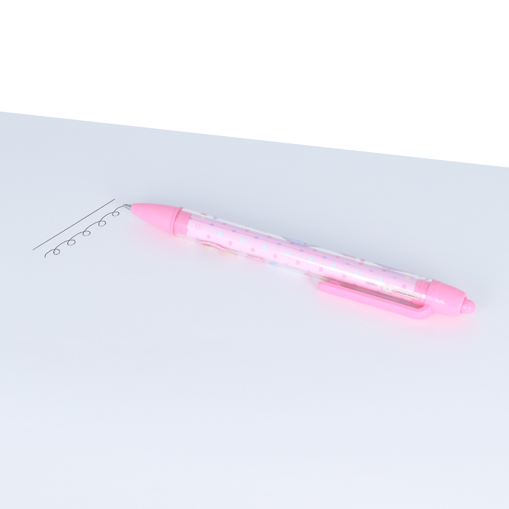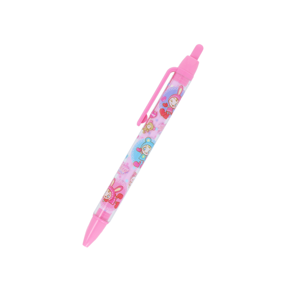 クリアな軸にイラストが浮かび上がり、先端やクリップ部分のピンクがアクセントです☆