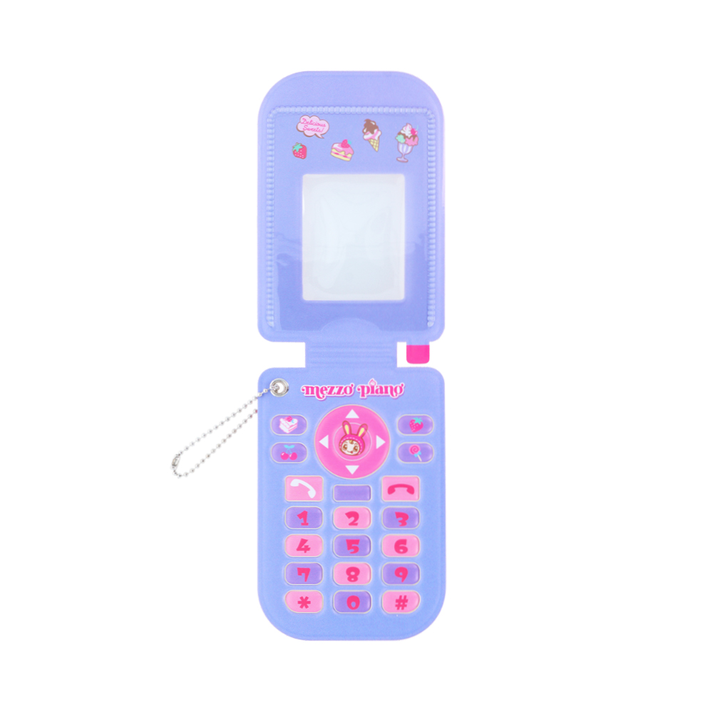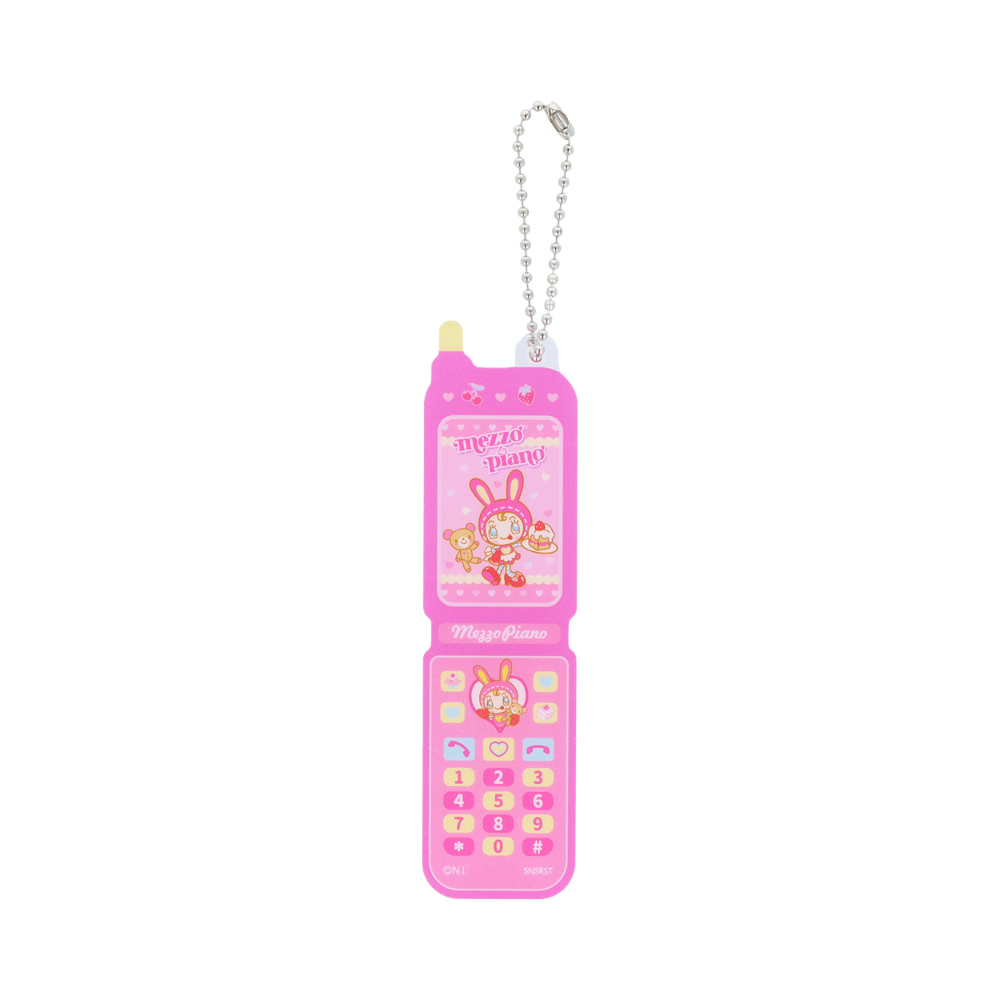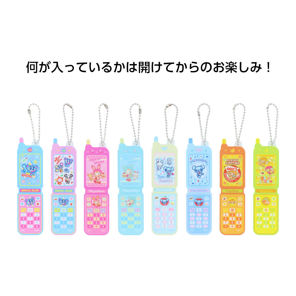 ガラケーの液晶部分に当たる箇所には「エンジェルブルー」や「メゾピアノジュニア」などのイラスト入り。