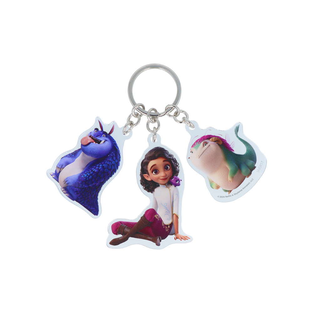 Aタイプの「3連アクリルキーホルダー」は「エリアン」と、モンスターに姿を変えられてしまった国王&王妃のデザイン。
