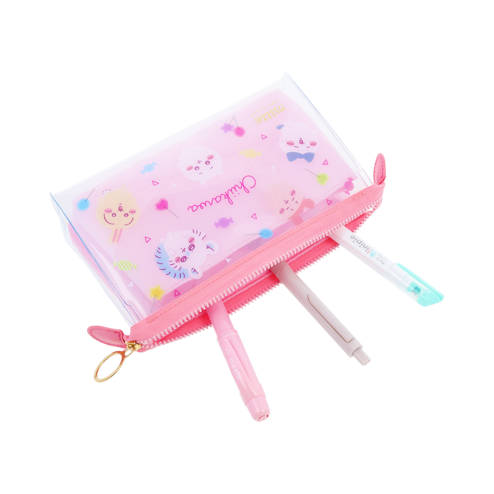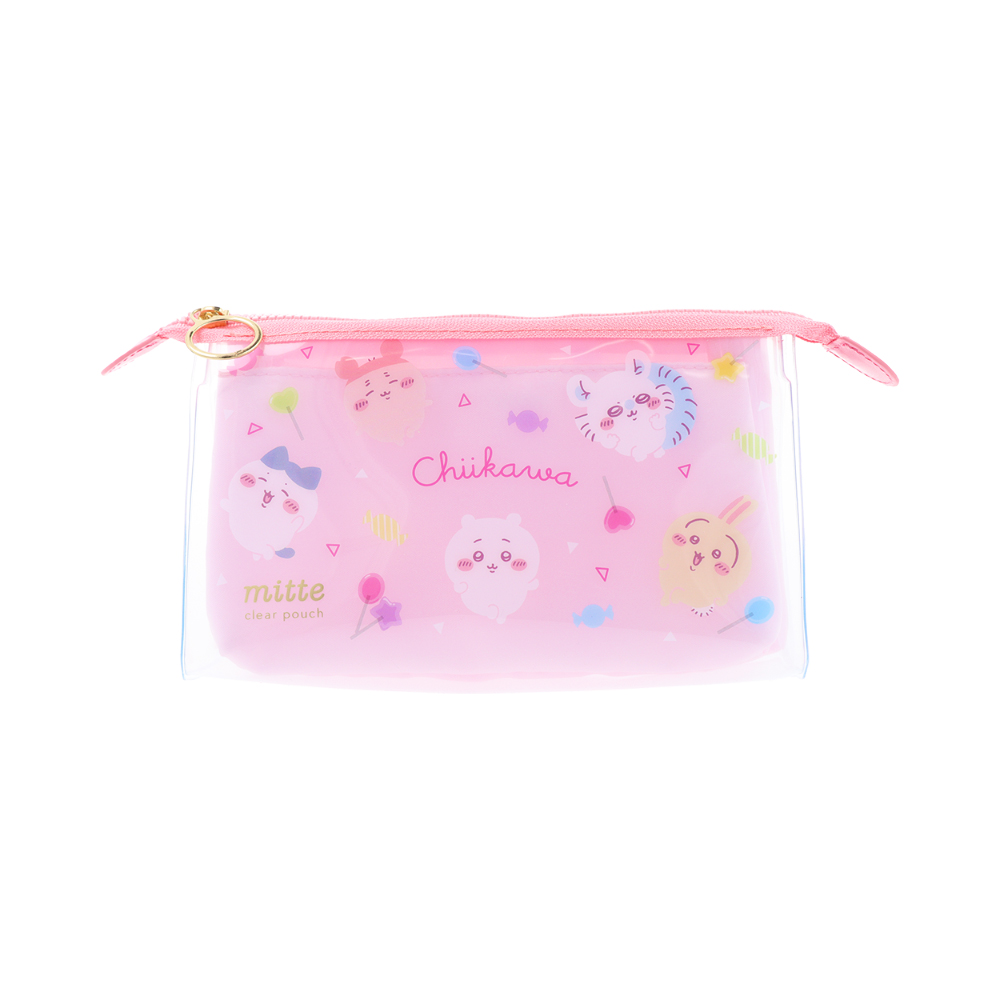 見せたいもの、見せたくないものを分けて収納できるマチつきクリアポーチ「mitte」シリーズの「ちいかわ」デザイン。