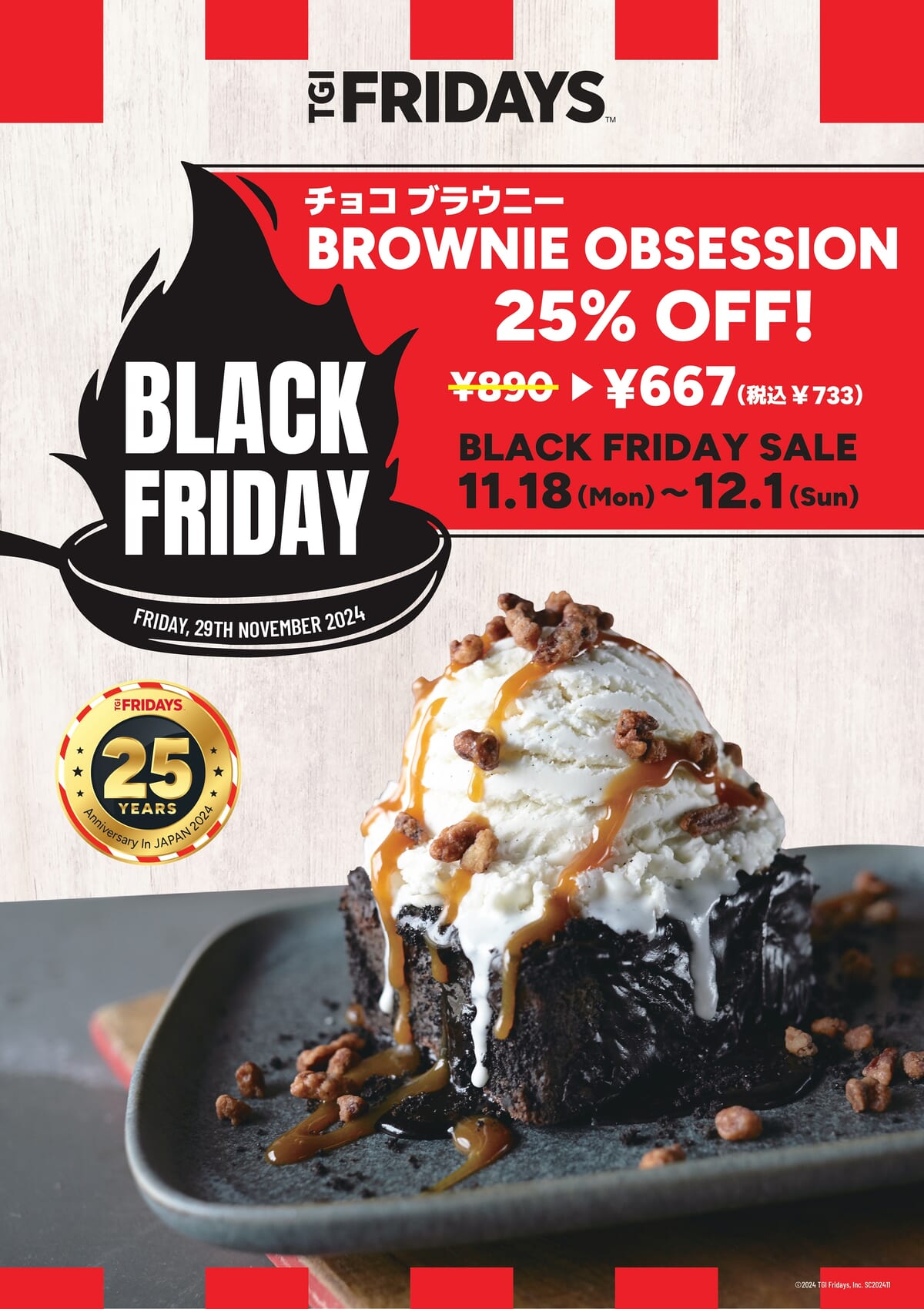 アメリカンカジュアルダイニングチェーンTGI Fridaysは、日本上陸25周年とBlack Fridayを記念して、期間限定で特別キャンペーンを実施!