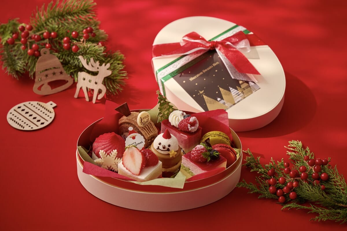 クリスマススイーツを含むミニサイズのスイーツ6種とマカロン2種を詰め込んだスイーツボックス。