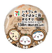 「ちいかわ」たちが狸の服を着て、ご飯を頬張るストーリーに登場する「炊き込みご飯おにぎり」をイメージした「ハチワレの炊き込みご飯おむすび」