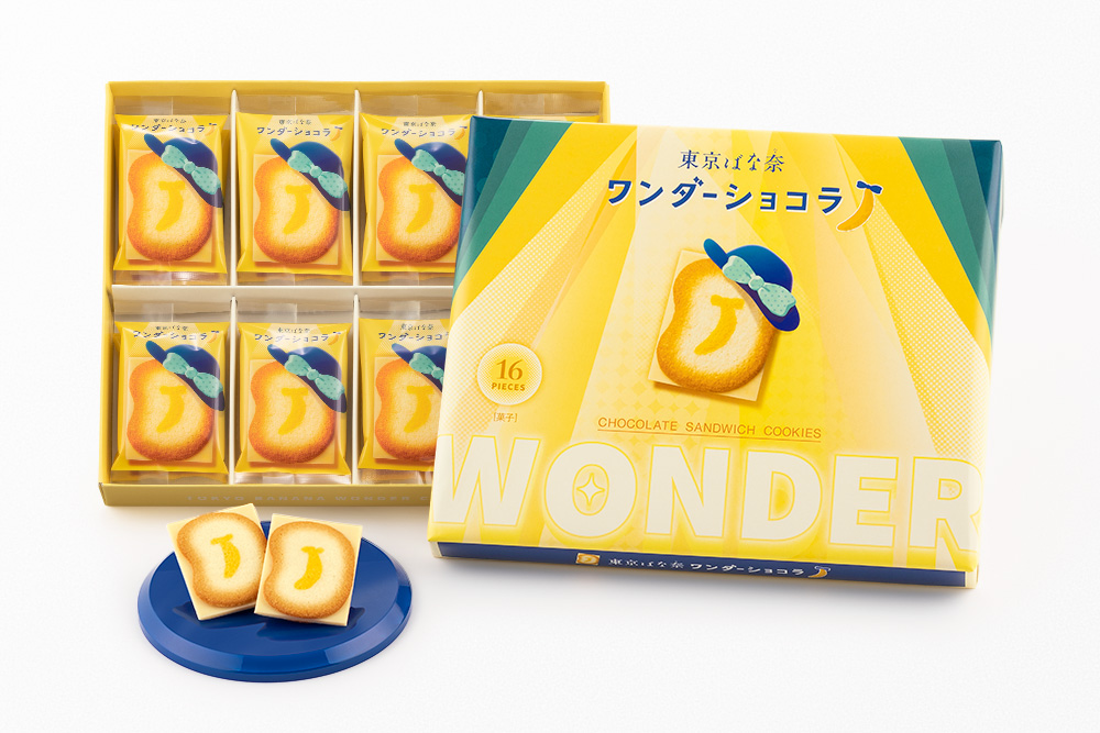東京ばな奈オリジナルのミルキーなバナナショコラを、味わいも食感も相性抜群で作り上げたラングドシャクッキーでサンドした「東京ばな奈ワンダーショコラ」