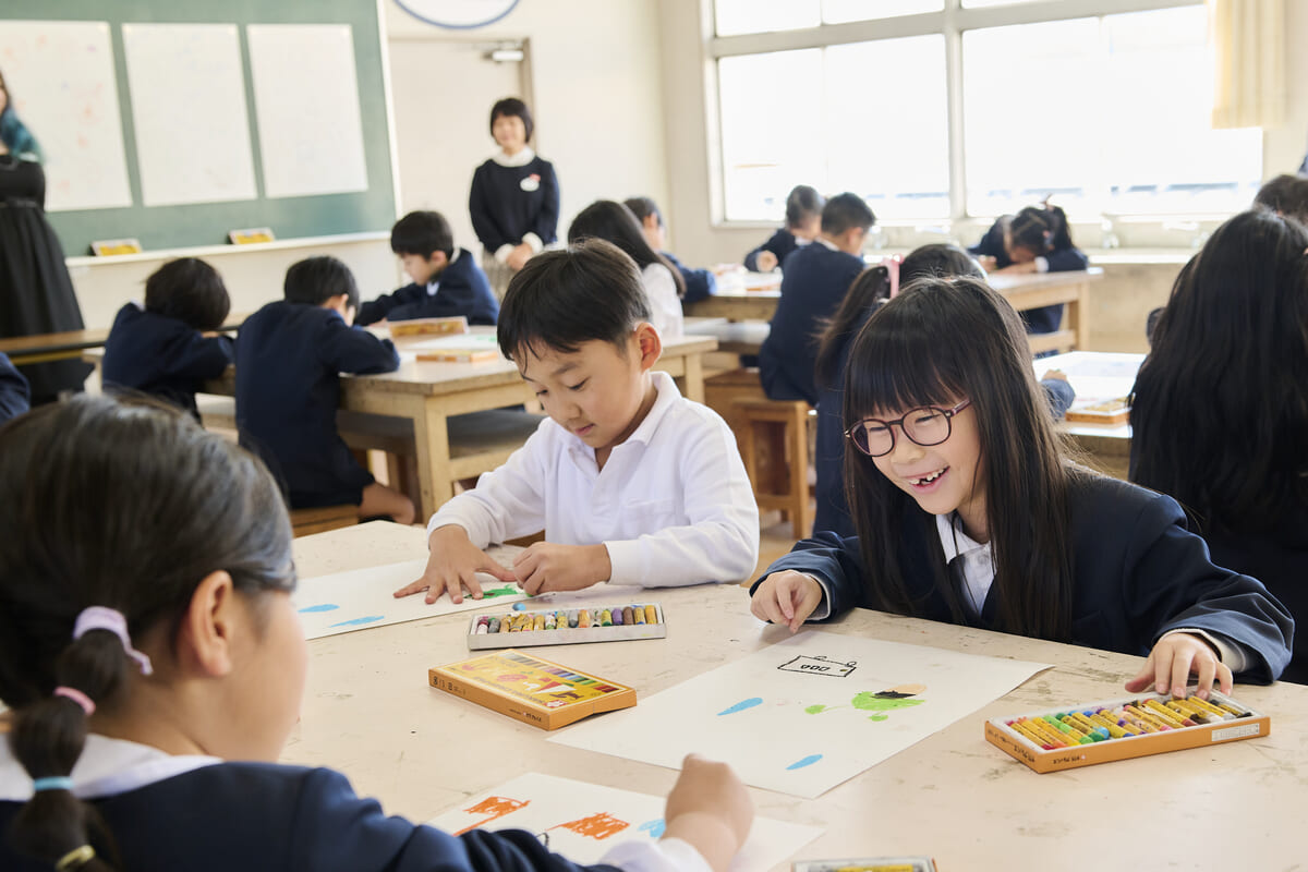 大阪市立育和小学校の小学1年生を対象に実施された、「アート(芸術)」をテーマにした出張授業。