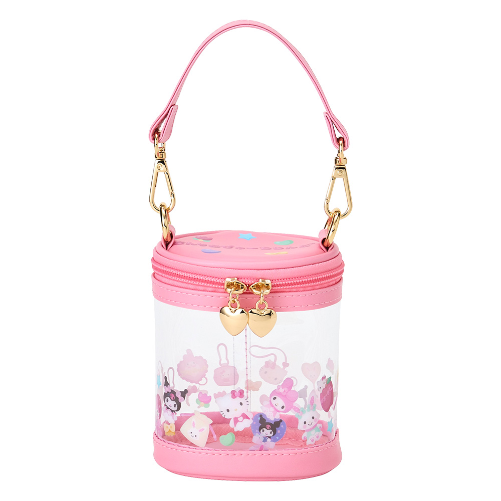 マスコットを入れて楽しめる、クリアタイプの丸型ポーチ。