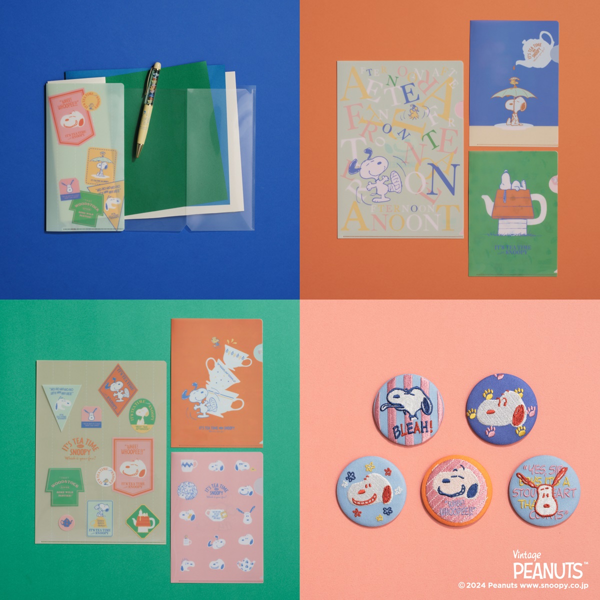 おうちに常備しておきたいキュートなクリアファイルセットや、刺しゅうで表現された「スヌーピー」の缶バッジも要チェックです!