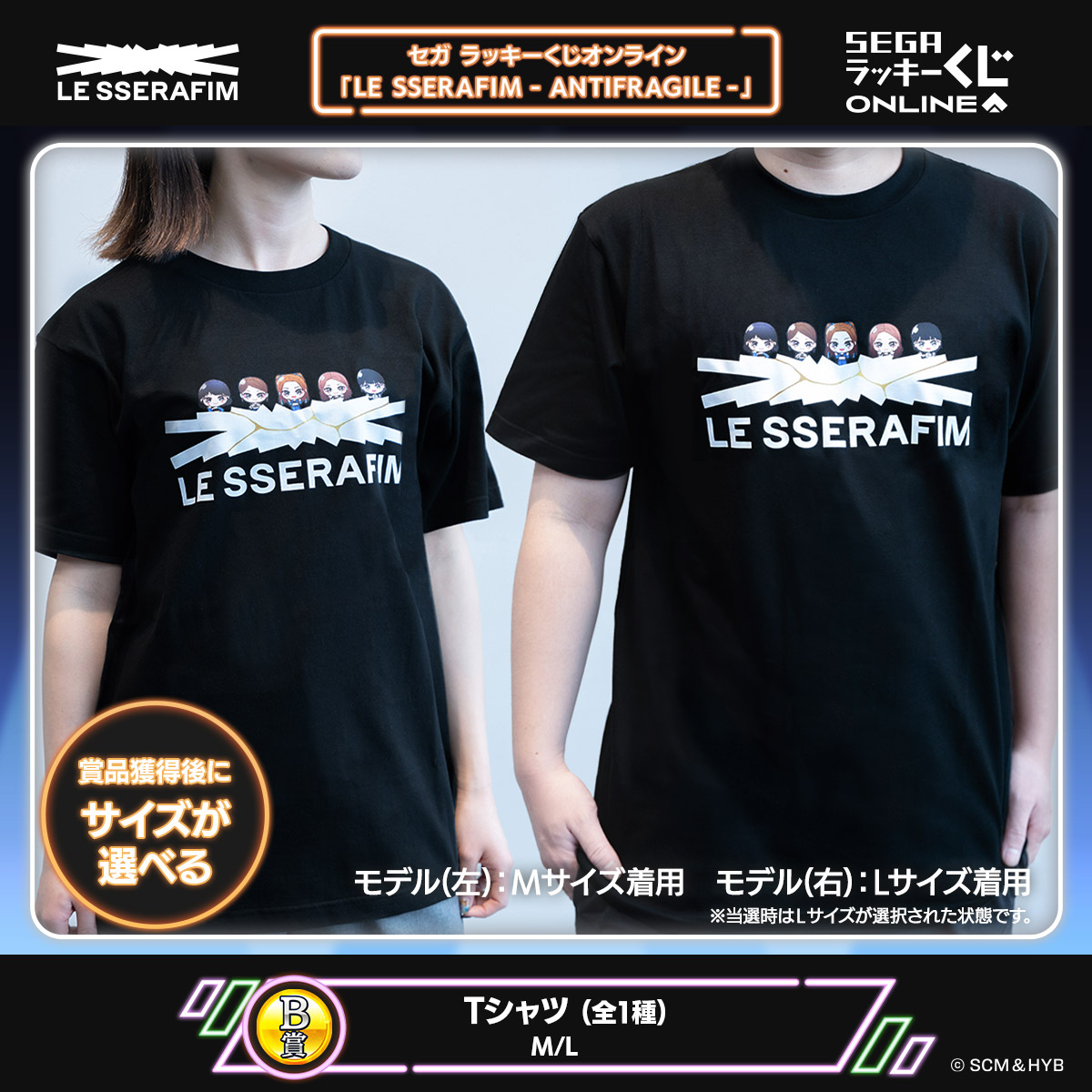 B賞のTシャツは、景品獲得後にサイズ選択が可能。