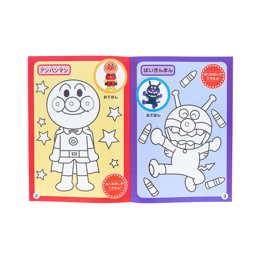 「アンパンマン」たちの可愛いイラストをぬりえするだけでも楽しめます。
