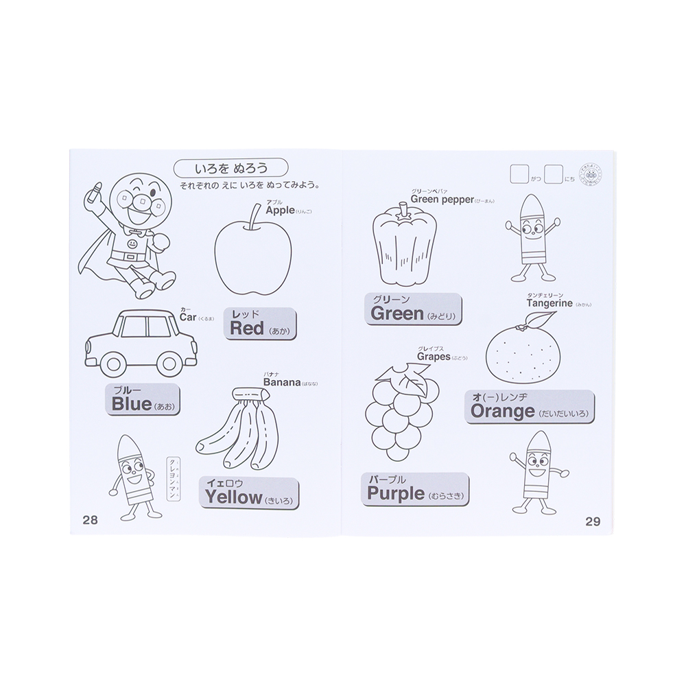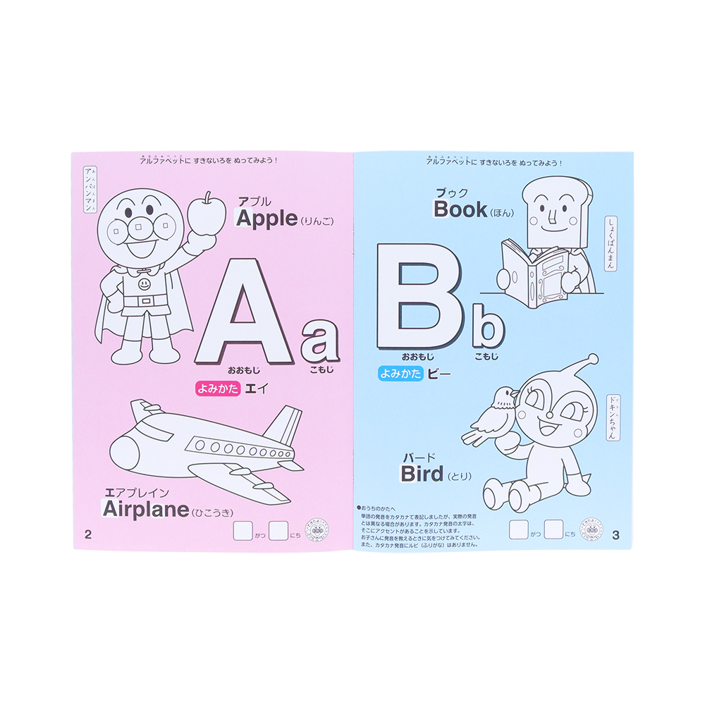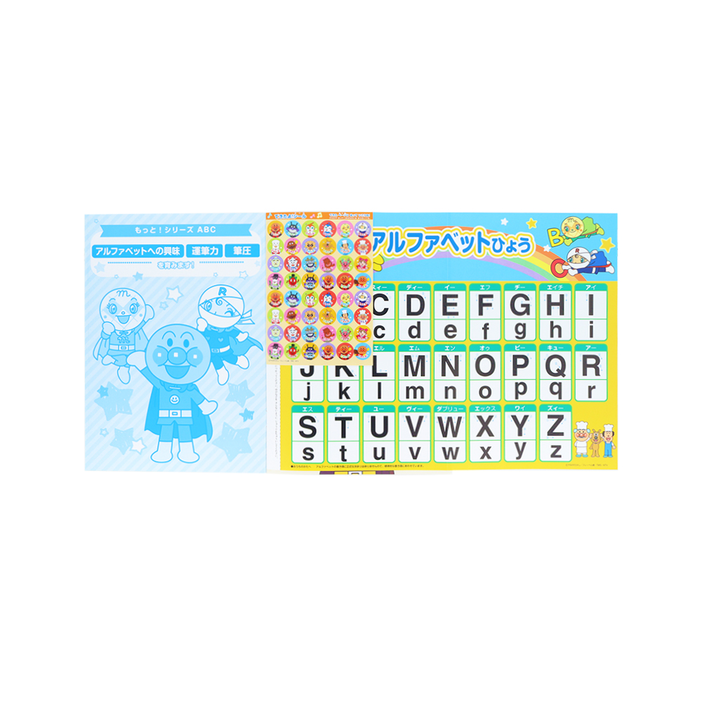 ぬりえをしながら、アルファベットが覚えられる「アンパンマン」デザイン。
