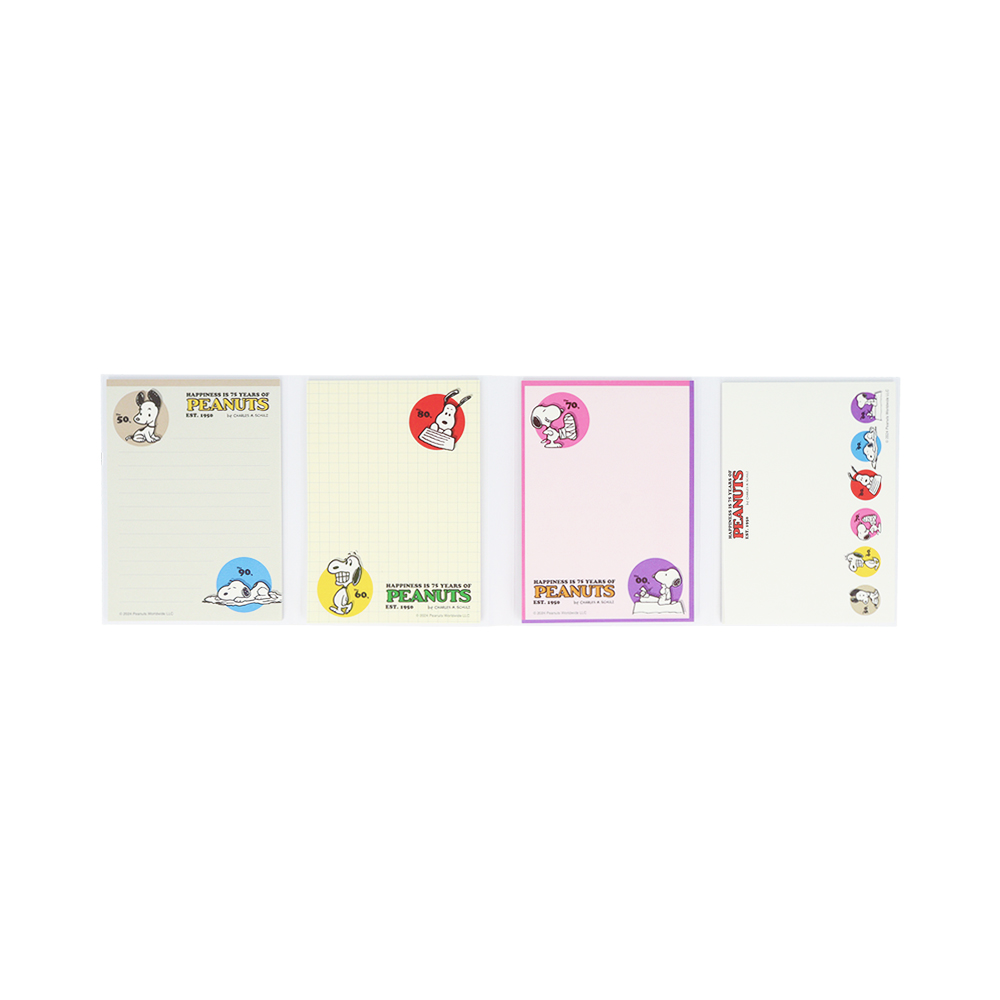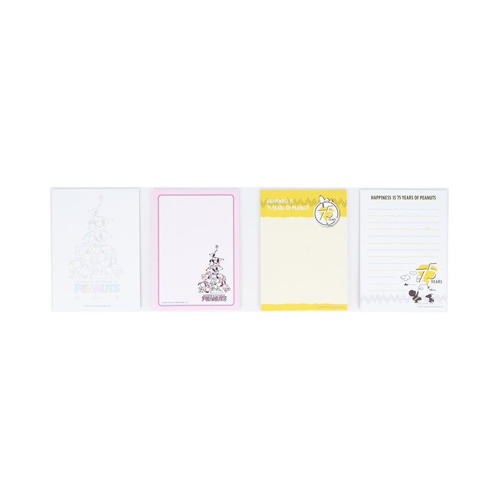75周年をお祝いしているデザインや各年代のスヌーピーをMIXしたデザインなど、アニバーサリーにぴったりなデザインです。