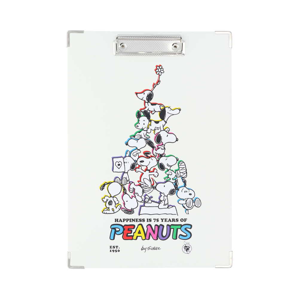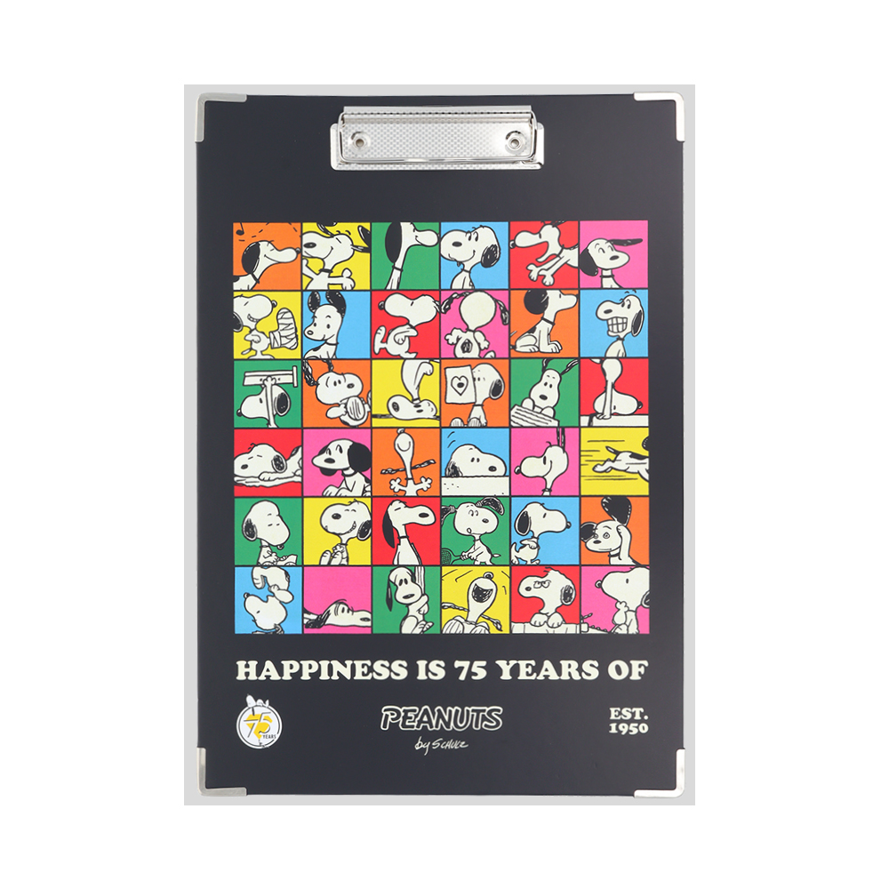 各年代の「スヌーピー」をMIXしたイラストデザインのクリップボード。