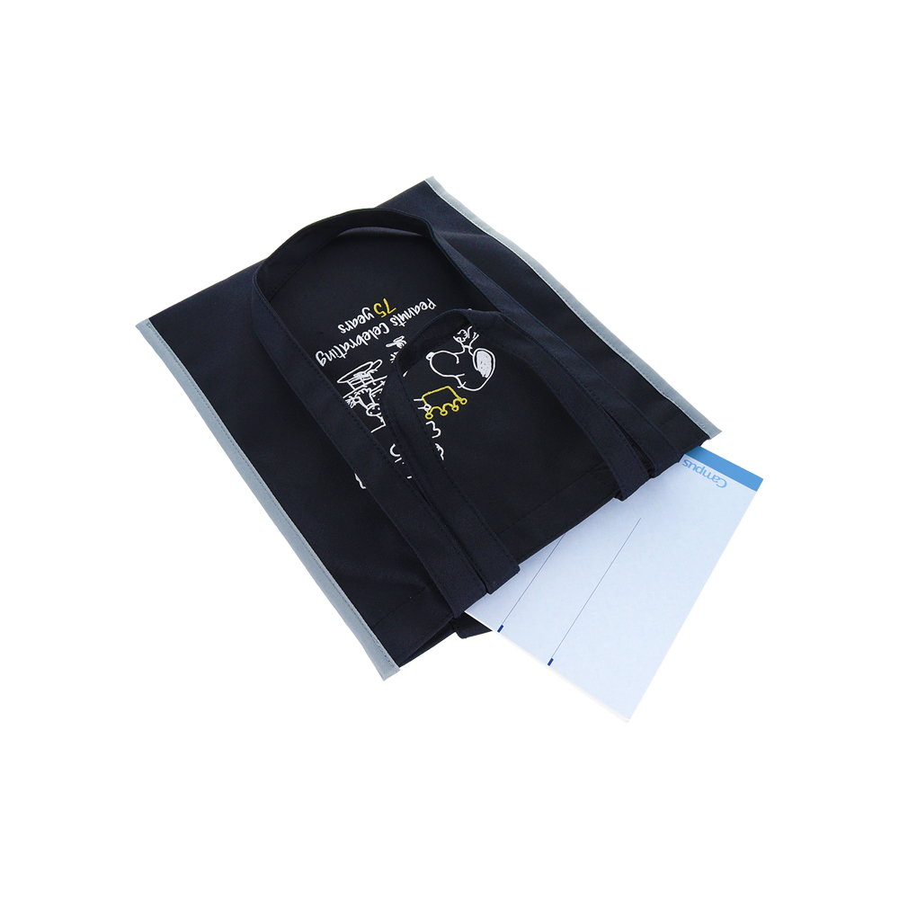 白の刺繍が映える黒生地タイプのトートバッグ。