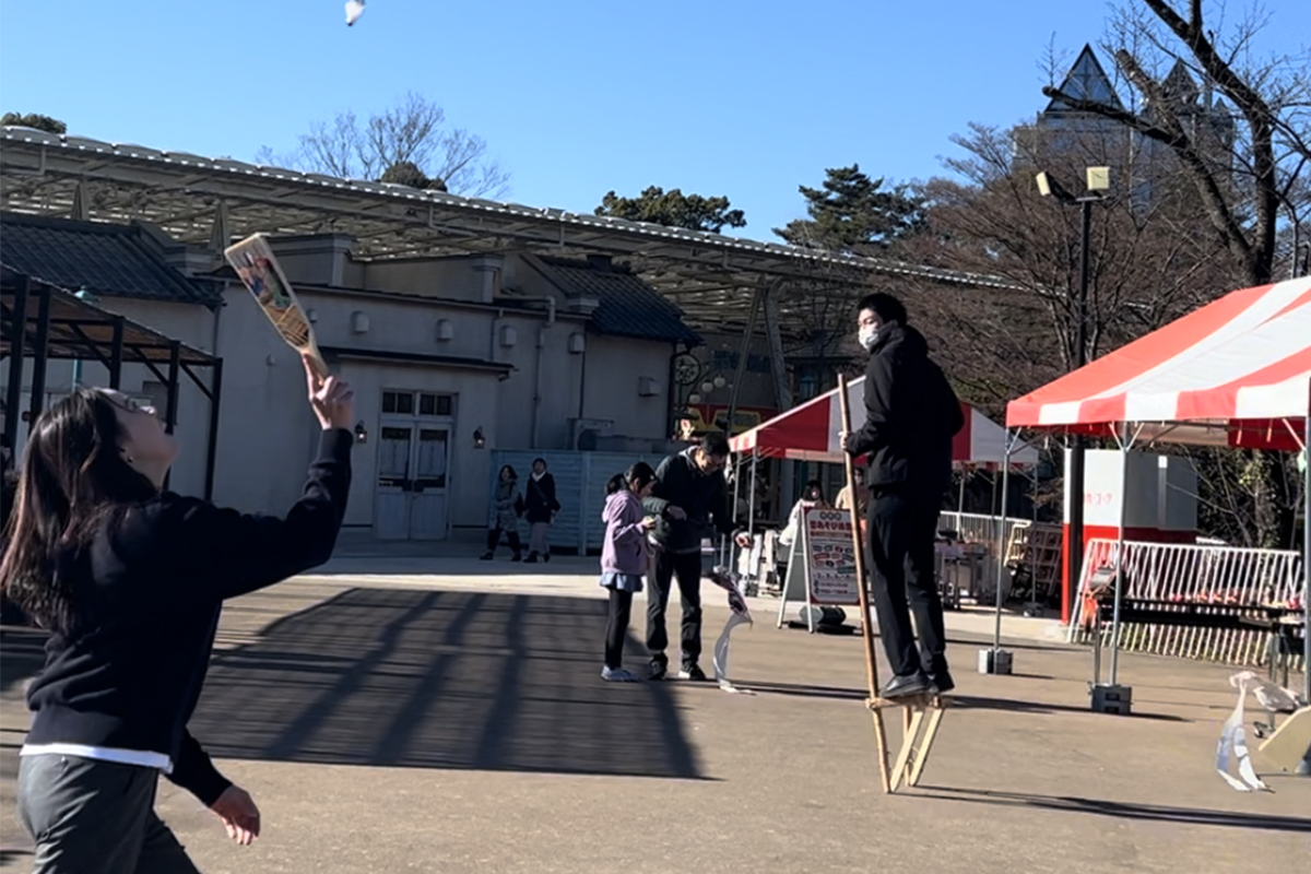けん玉や羽子板、凧に竹馬など、今となってはなかなか体験できない昔懐かしい遊びが勢ぞろい。