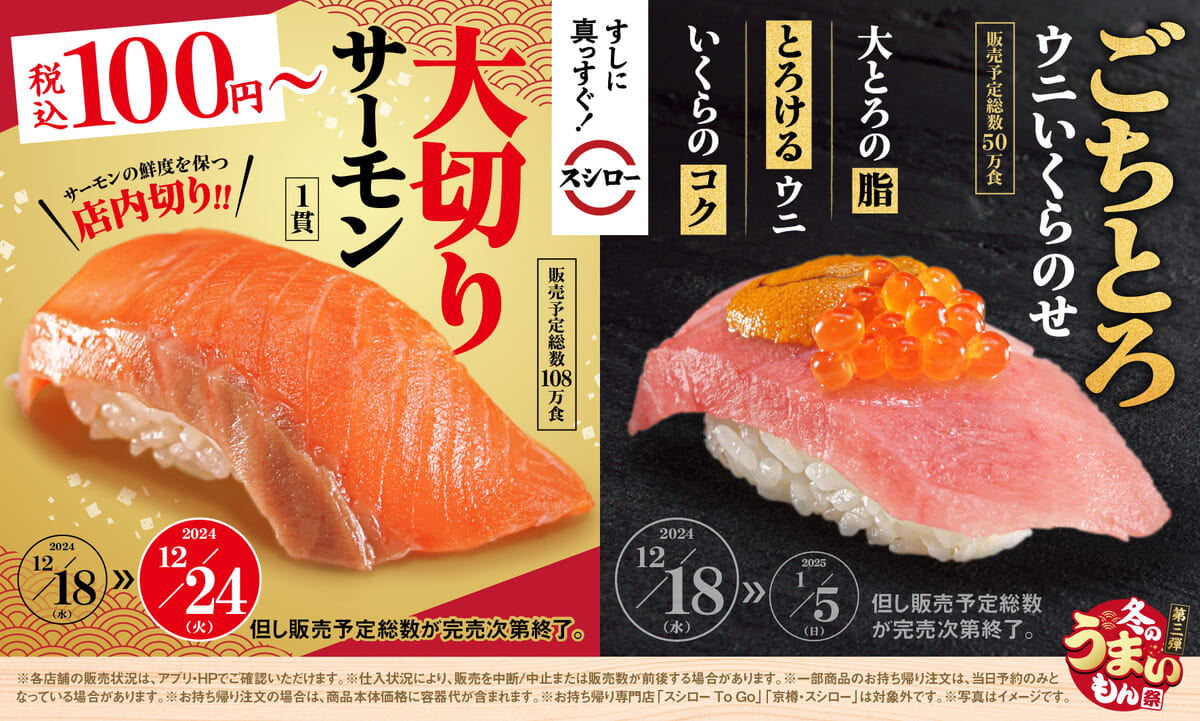 スシローの「冬のうまいもん祭 第3弾」は、2024年12月18日(水)より開催です。