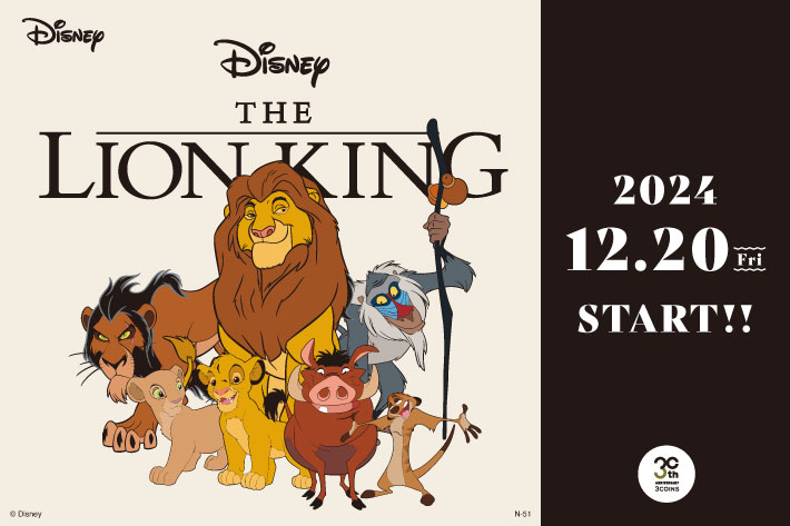 日本公開30周年を迎えた『ライオン・キング』と、ブランド誕生30周年を迎えた3COINSの記念イヤーにタッグを組んだ、特別なグッズが販売されます。