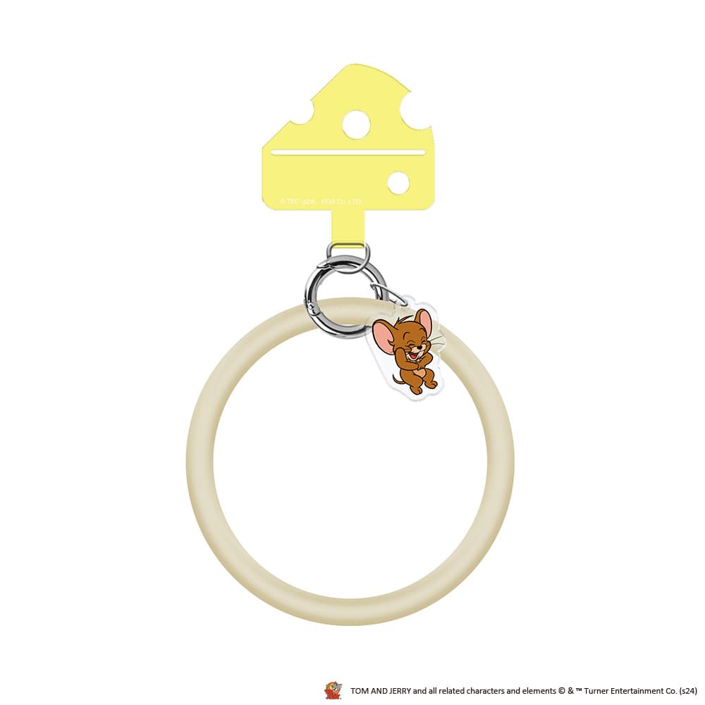 大笑いする「ジェリー」のチャームが付いた、キュートなシリコンリングハンドストラップ。