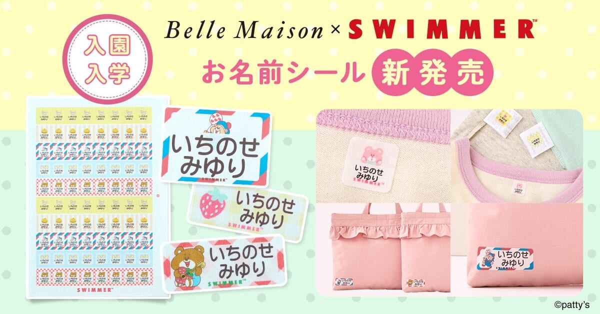 ベルメゾンから「SWIMMER」コラボレーションの布製品用「お名前シール」3種が登場!
