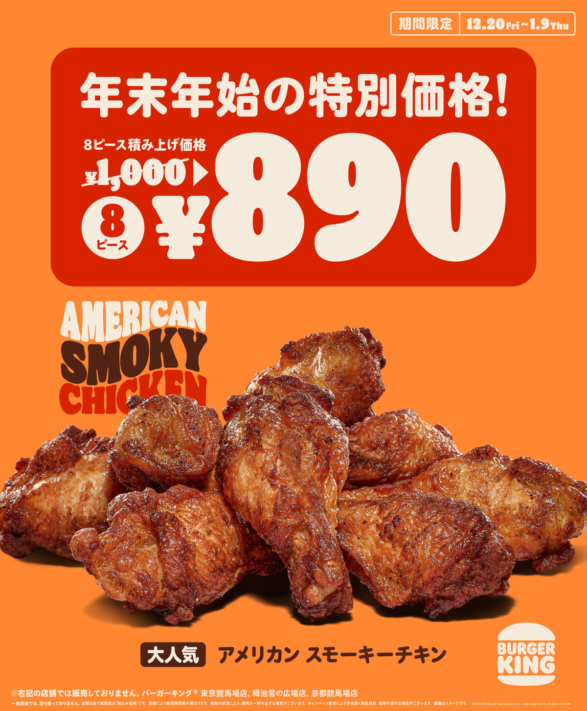 バーガーキングの人気サイドメニュー『アメリカン スモーキーチキン』が年末年始限定の特別価格で登場!