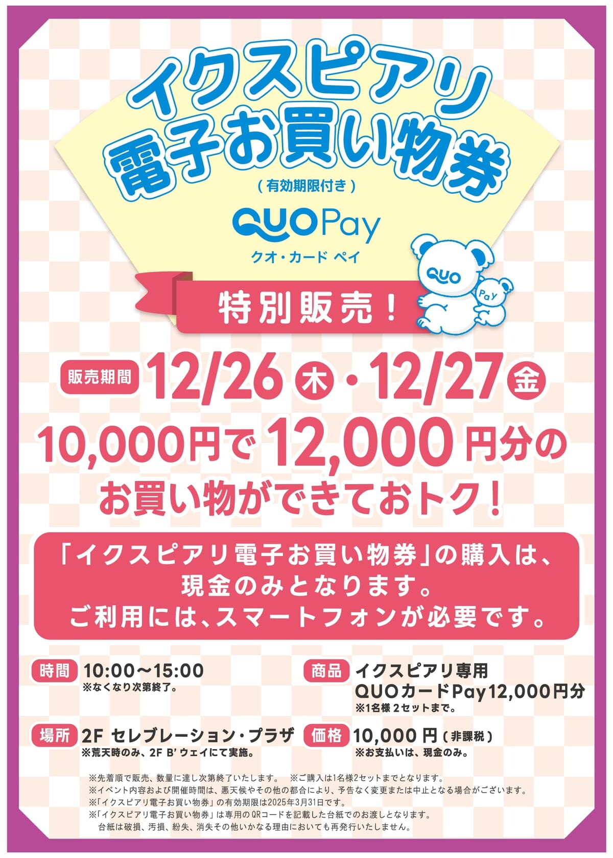2023年までの紙のお買い物券から、2024年は1円単位で使用できるイクスピアリ専用の「QUOカードPay」へとアップデートされます。