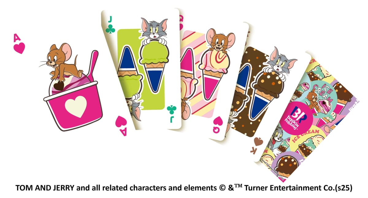 「お正月スペシャルセット トムとジェリー」には、ここでしかゲットできないサーティワンのアイスクリームと『トムとジェリー』がコラボしたオリジナルトランプ付き。