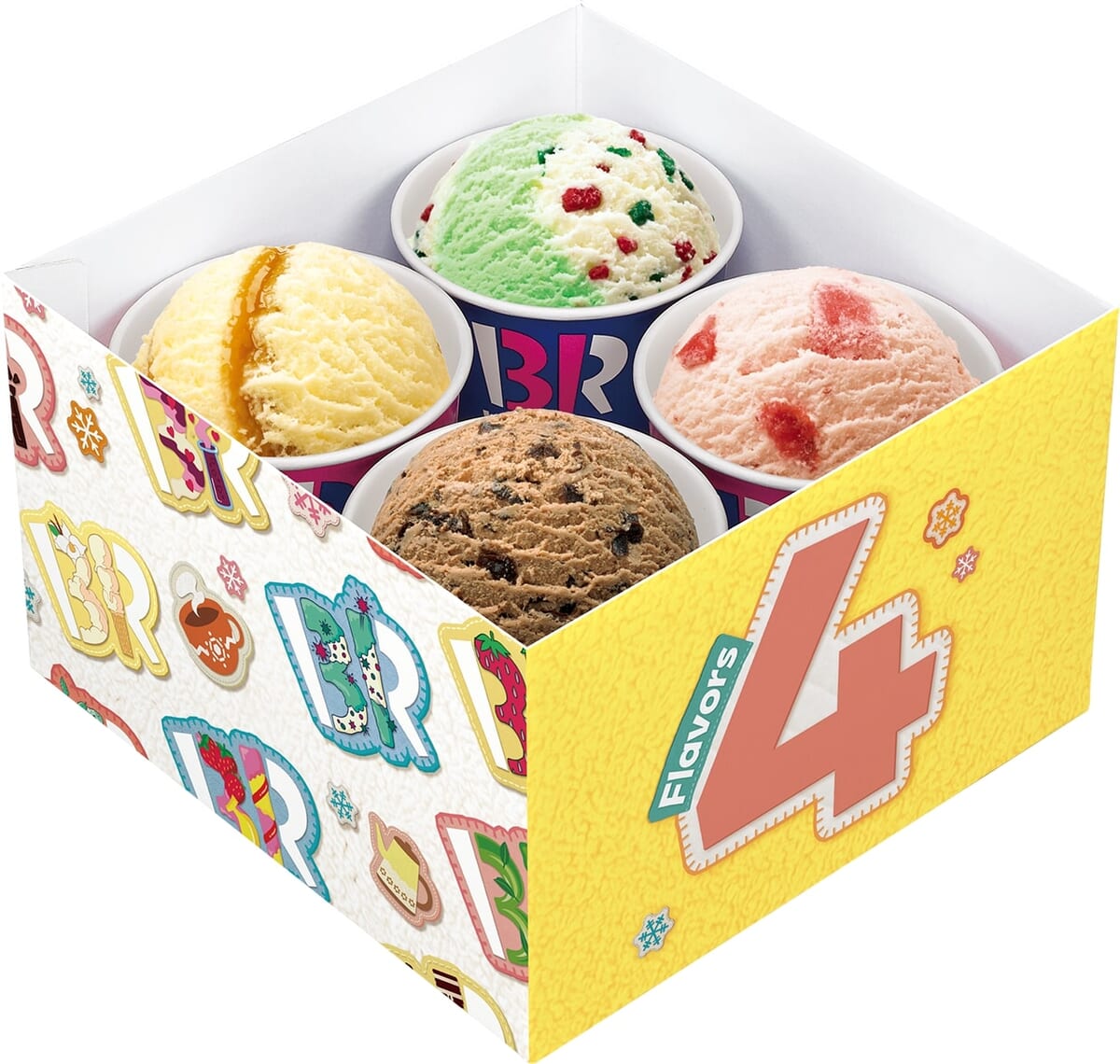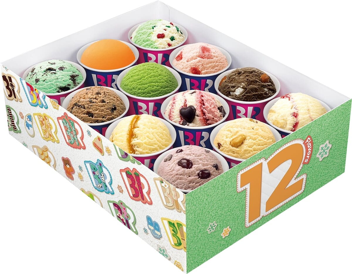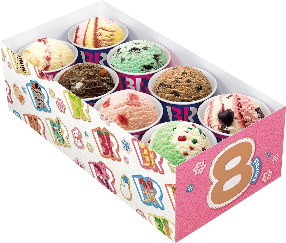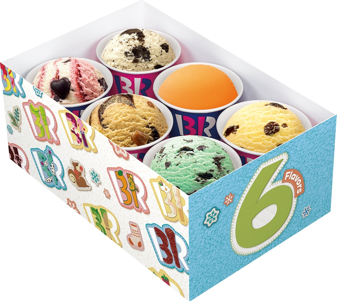 好きなアイスクリーム(スモールorレギュラー)から選ぶことができる、年末年始なお正月など、シーンに合わせて選べる「バラエティボックス」が冬限定デザインで登場。