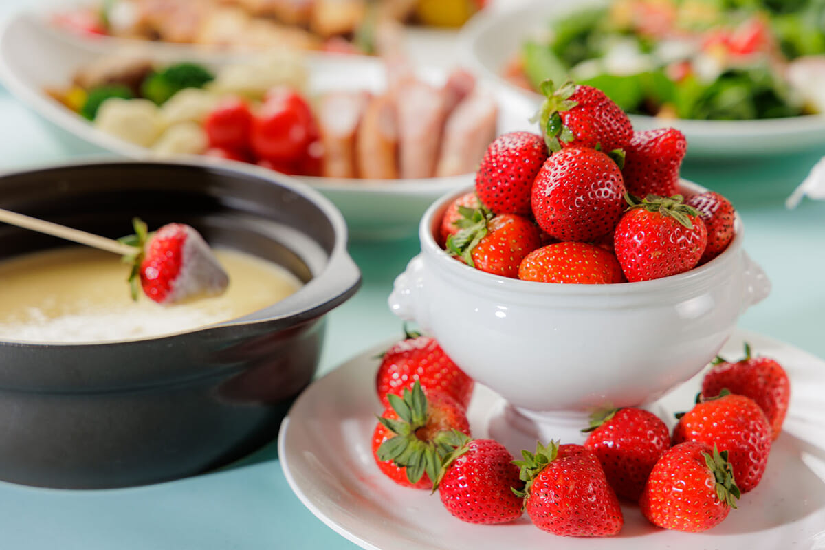 いちごもフォンデュできるチーズフォンデュに