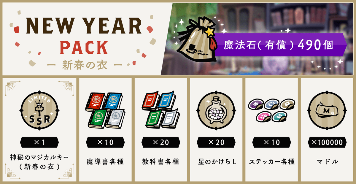 魔法石が100個もらえる「ニューイヤーパック(育成)」