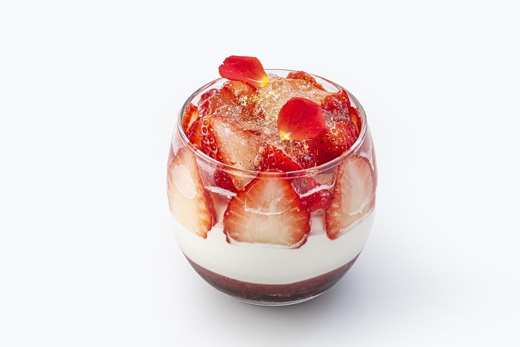 「福岡県産あまおうと北海道産フロマージュのヴェリーヌ」は、福岡県産の「あまおう」で飾り付けたグラスデザート。