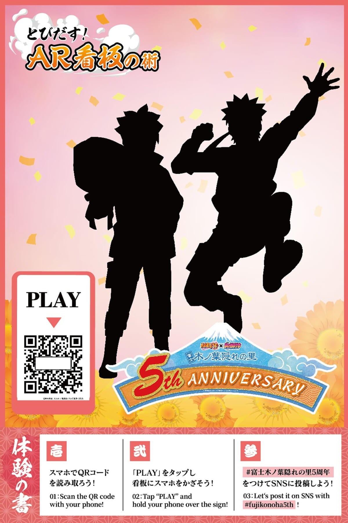 そのほか「うずまきボルト」「うちはサラダ」「ミツキ」が飛び出すARフォトスポットが里内や周辺施設に登場するほか、第一弾から販売している5周年限定メニューに加えて、3人にちなんだ限定メニューや5周年の新グッズもラインナップ。