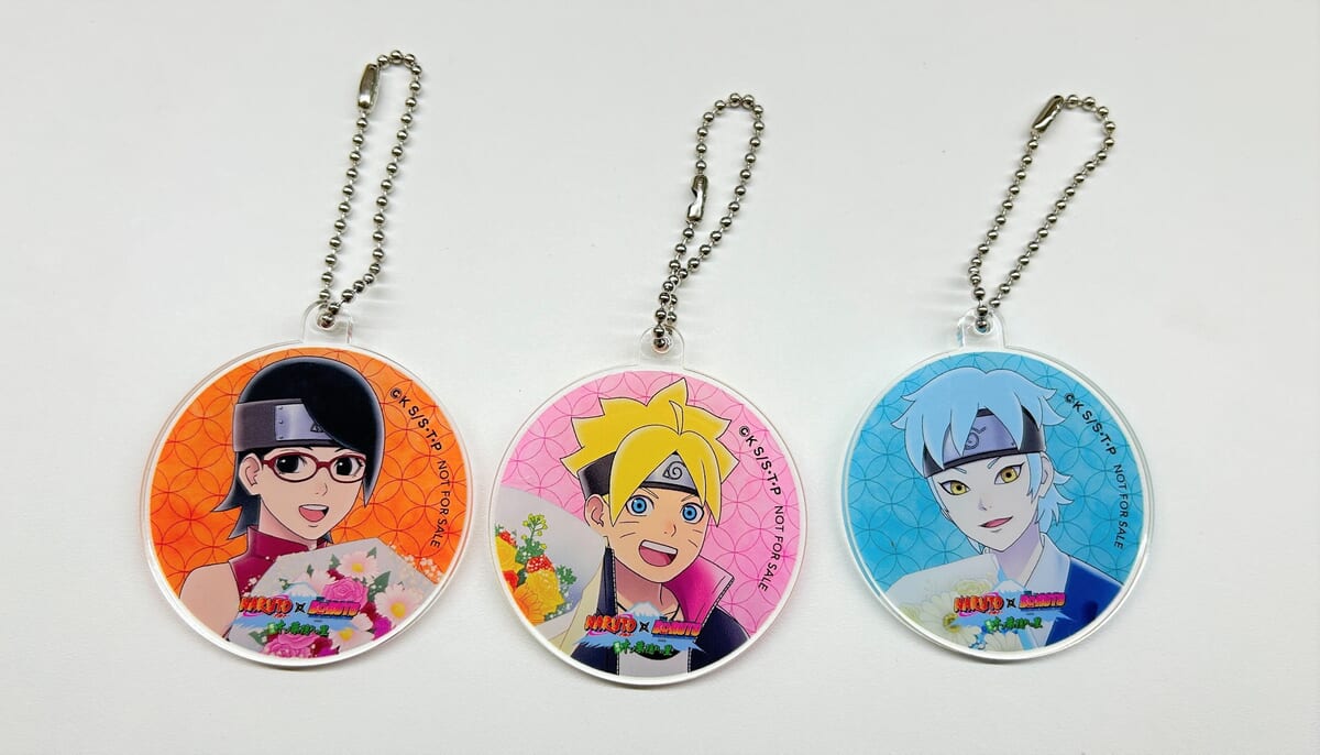 第3弾では、第1弾で登場した4種のチャームに加えて、「うずまきボルト」「うちはサラダ」「ミツキ」の描きおろしデザインのオリジナルチャームが登場します。