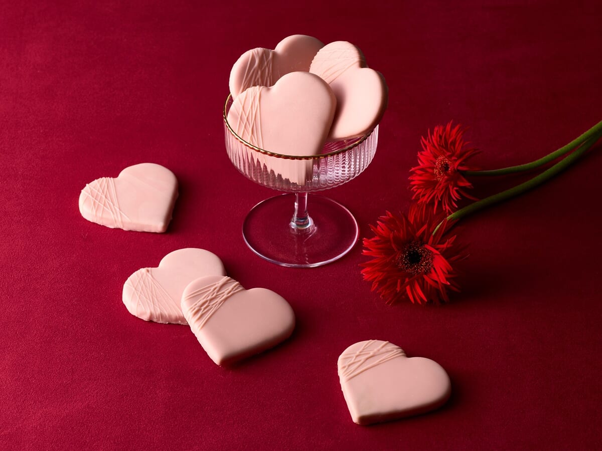 上質なバターの香りとサクサク食感をストロベリーチョコレートで閉じ込めた、ハート形が愛らしいサブレ。