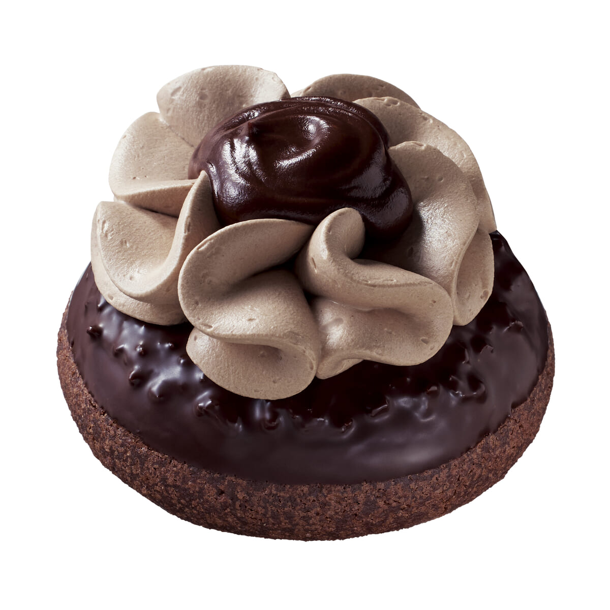 このショコラドーナツ生地に、チョコレートコーティングやガナッシュホイップなど何層もの食感と味わいを重ね合わせることで珠玉のドーナツが完成。