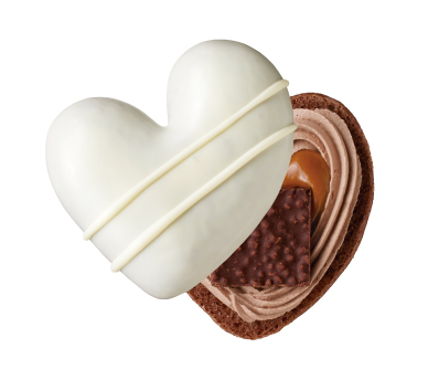 非対称なハート型ココアドーナツ生地に、ホワイトチョコをコーティングした「クールココロ キャラメルサレ」