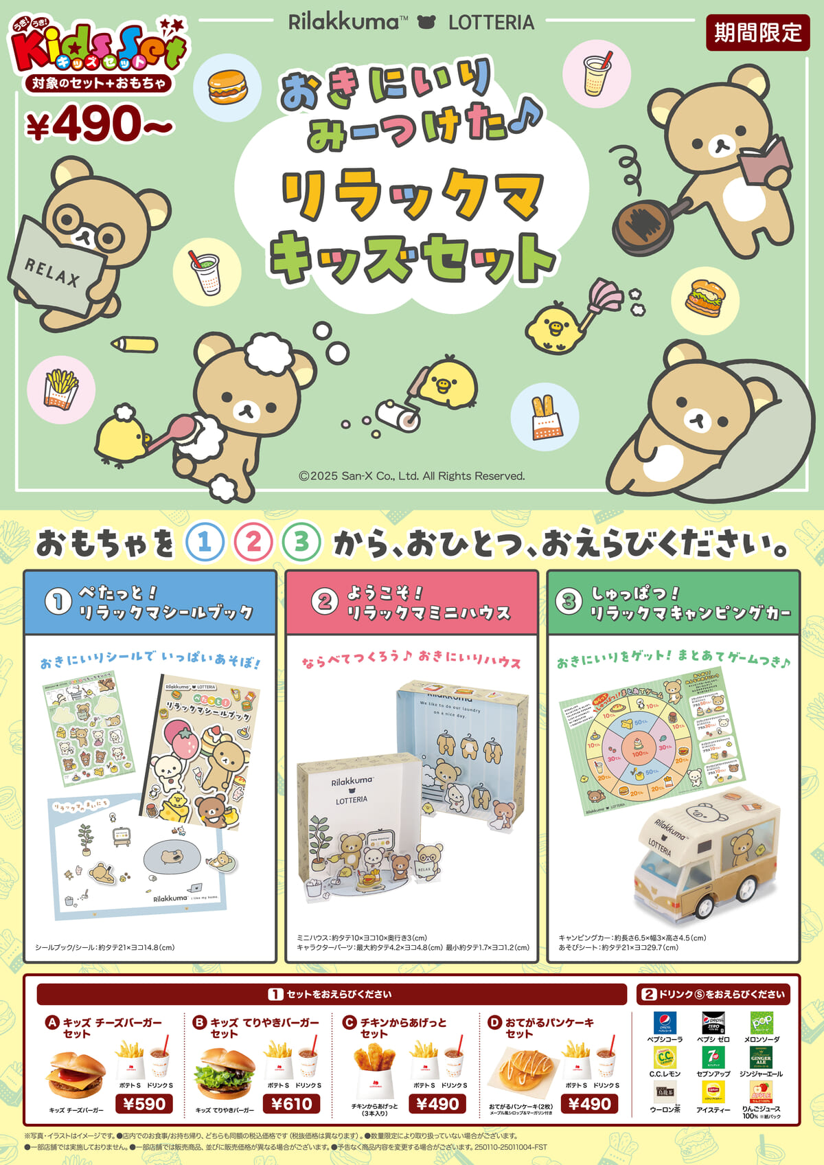 ロッテリアにて2025年1月10日より販売される「おきにいりみーつけた♪リラックマキッズセット」の紹介でした☆