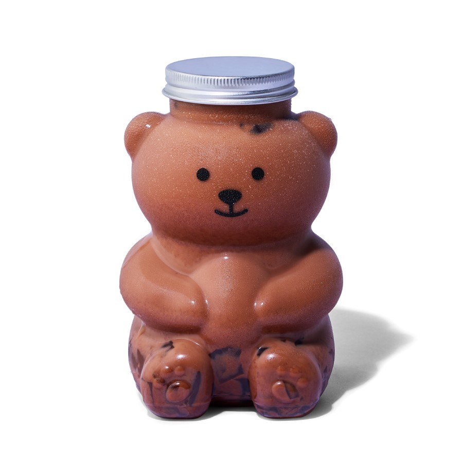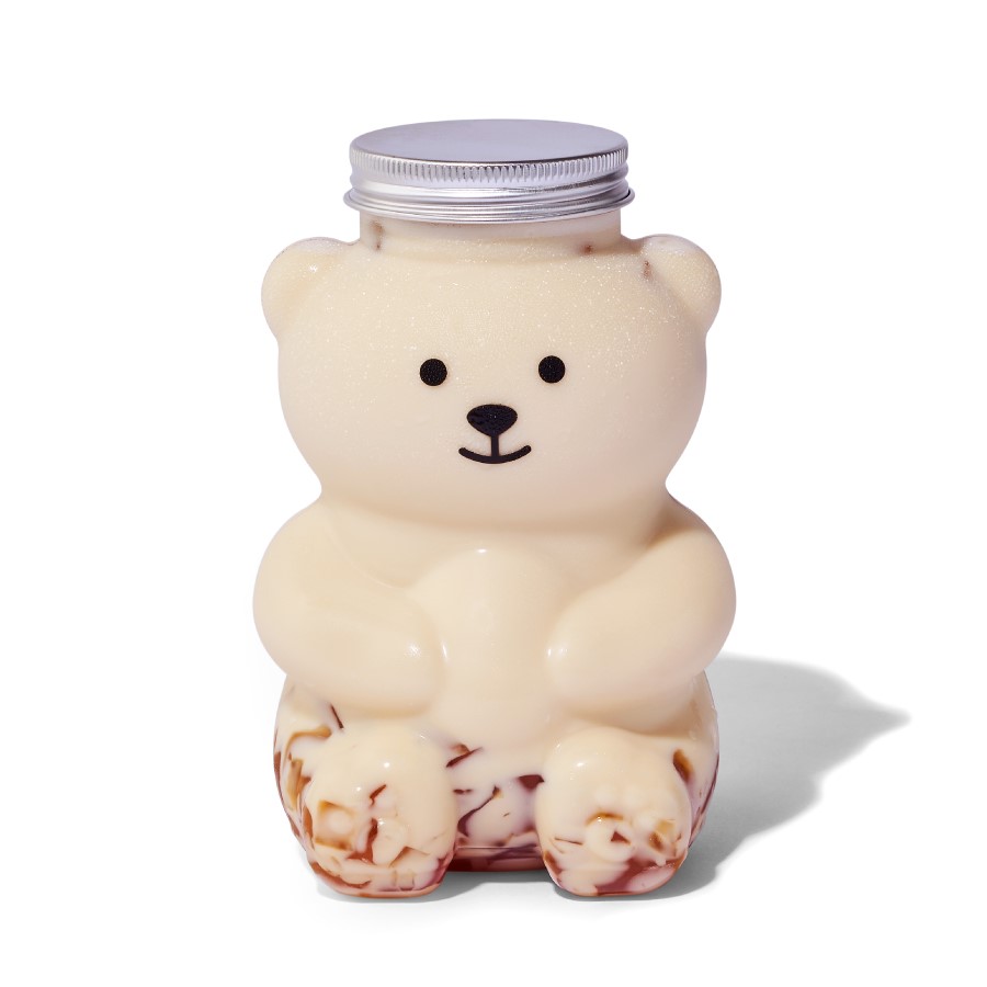 ジャスミングリーンティーがベースのミルクティーにハニーソースを合わせ、ベア型の限定ボトルに入れた「ハニーベア」