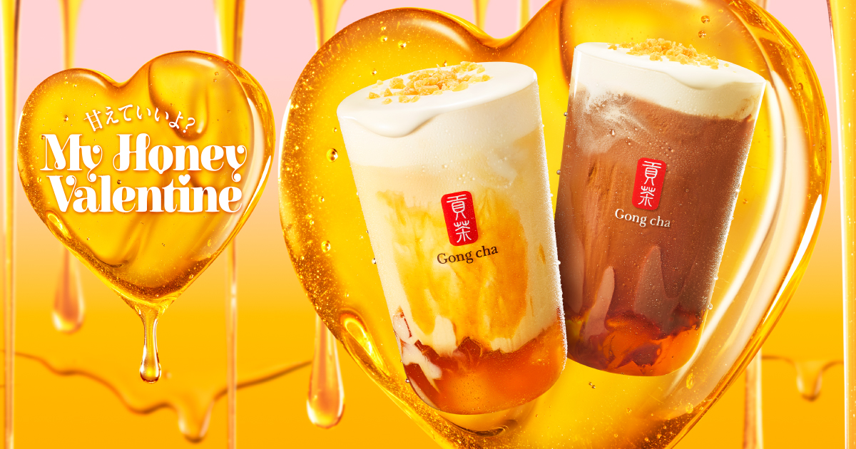 台湾発祥のグローバルティーカフェ「ゴンチャ」のバレンタインメニューとして”ハニー”を主役にしたミルクティーとショコラティーが登場。