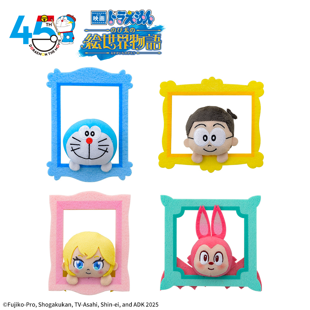 「ドラえもん」と「のび太」のほか、映画に登場する「クレア」「チャイ」の額縁マスコットもラインナップされます。