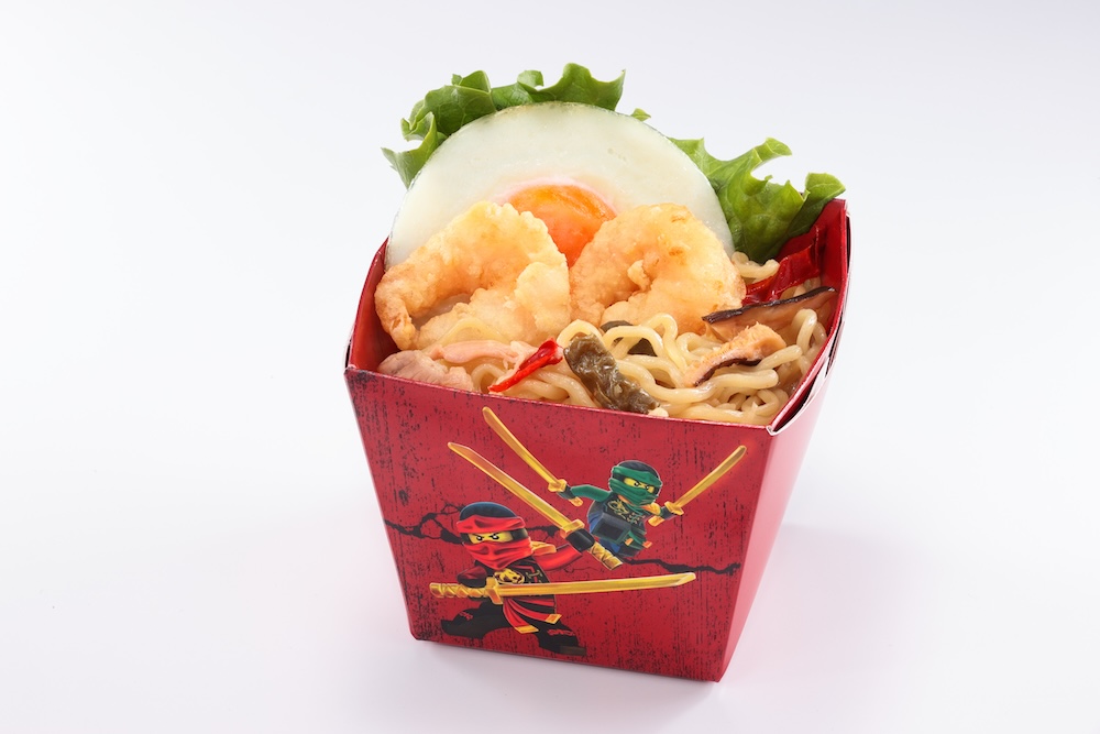「レゴ(R) ニンジャゴー」のフードパッケージに入った焼きそばやチャーハン、「レゴ(R) ニンジャゴー型のカステラなど、世界観満載のフードがたっぷりです。