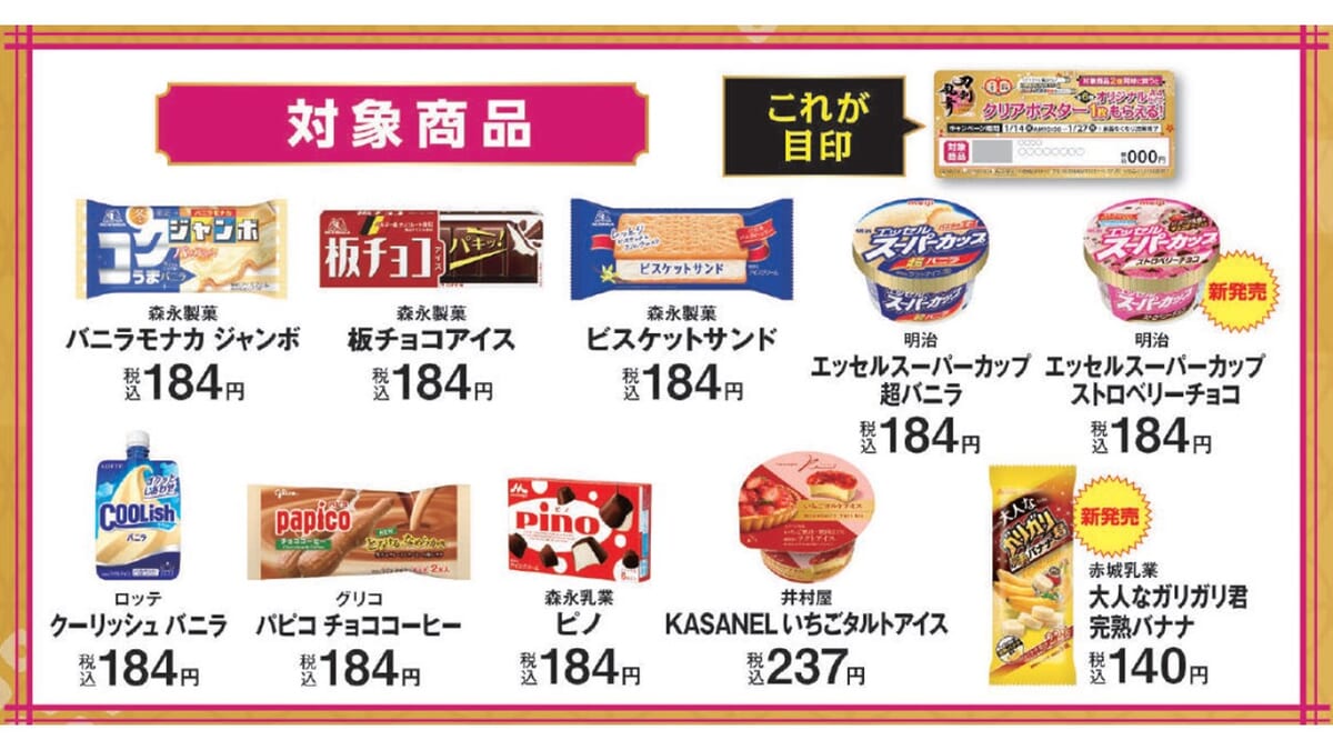オリジナルデザインクリアポスターがもらえる!アイスキャンペーン