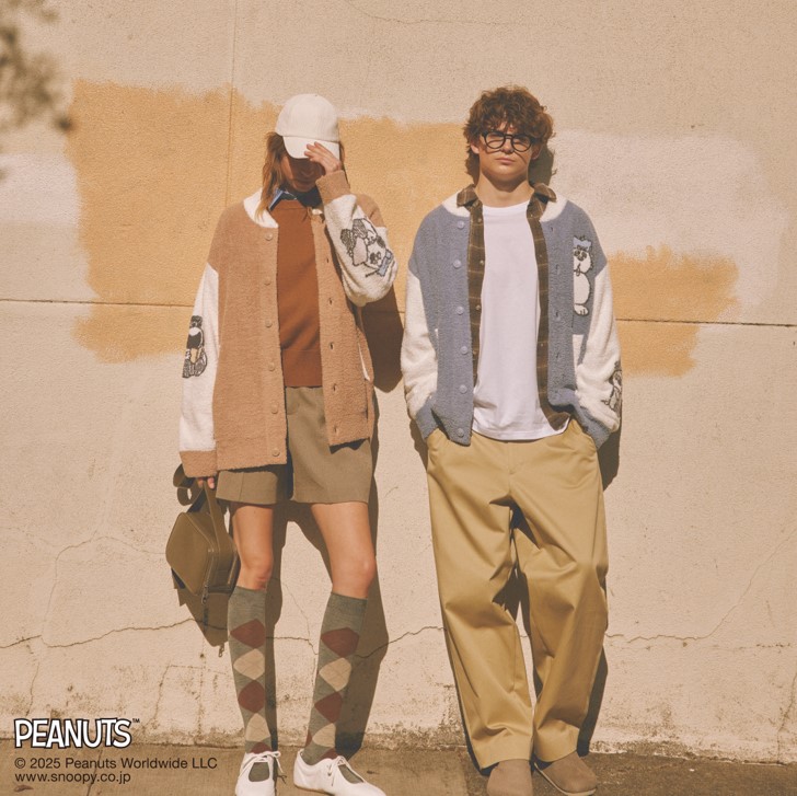 「スヌーピー」「チャーリー・ブラウン」「サリー」「ルーシー」「シュローダー」をフロント部分に大きくジャガードであしらったニットシリーズ。