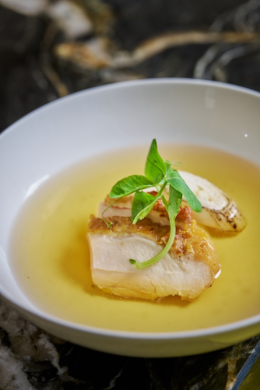 ・チキンコンソメ(甲州地鶏のロースト、下仁田ねぎのグリル)