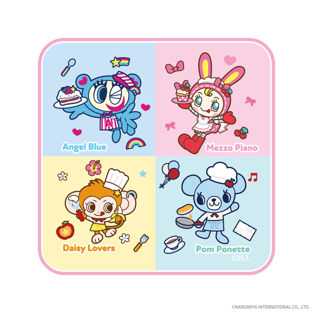ナルミヤ・インターナショナルが展開するオリジナルブランド「mezzo piano junior(メゾピアノ ジュニア)」「pom ponette junior(ポンポネット ジュニア)」「ANGEL BLUE(エンジェルブルー)」「DAISY LOVERS(デイジーラヴァーズ)」など2000年代前半に一世を風靡したジュニアアパレルブランドの人気キャラクター「ナルミヤキャラクター」