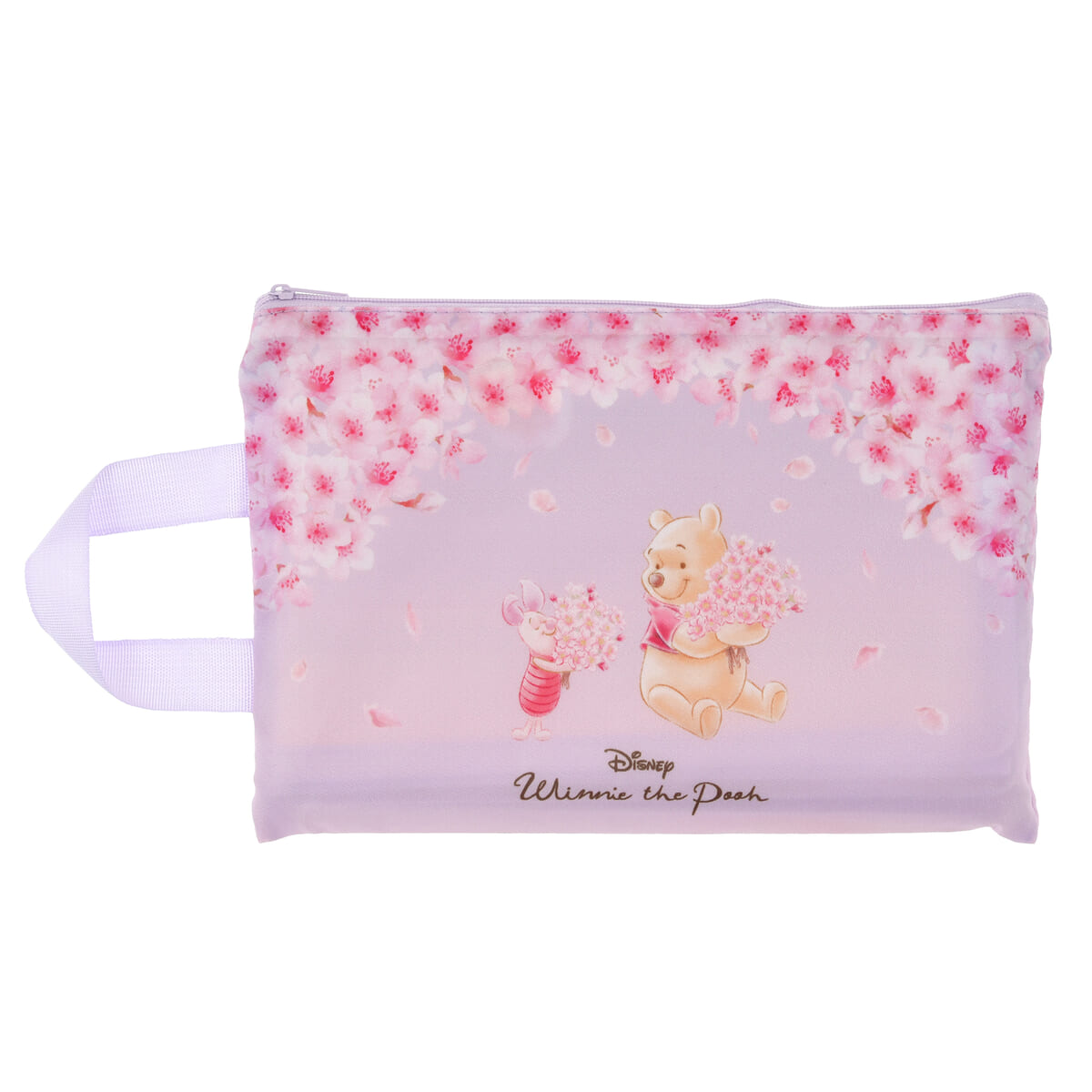 桜と「くまのプーさん」「ピグレット」を描いた、夜桜のような淡いパープルが印象的なショッピングバッグ。