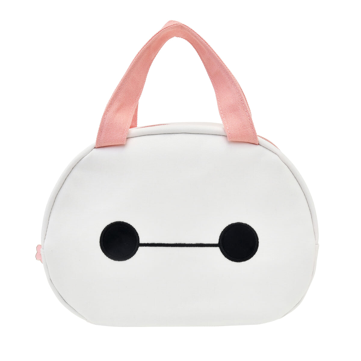 「ベイマックス」のお顔そのままのかわいらしい白地のバッグに、桜色の持ち手が付いた保冷バッグ。