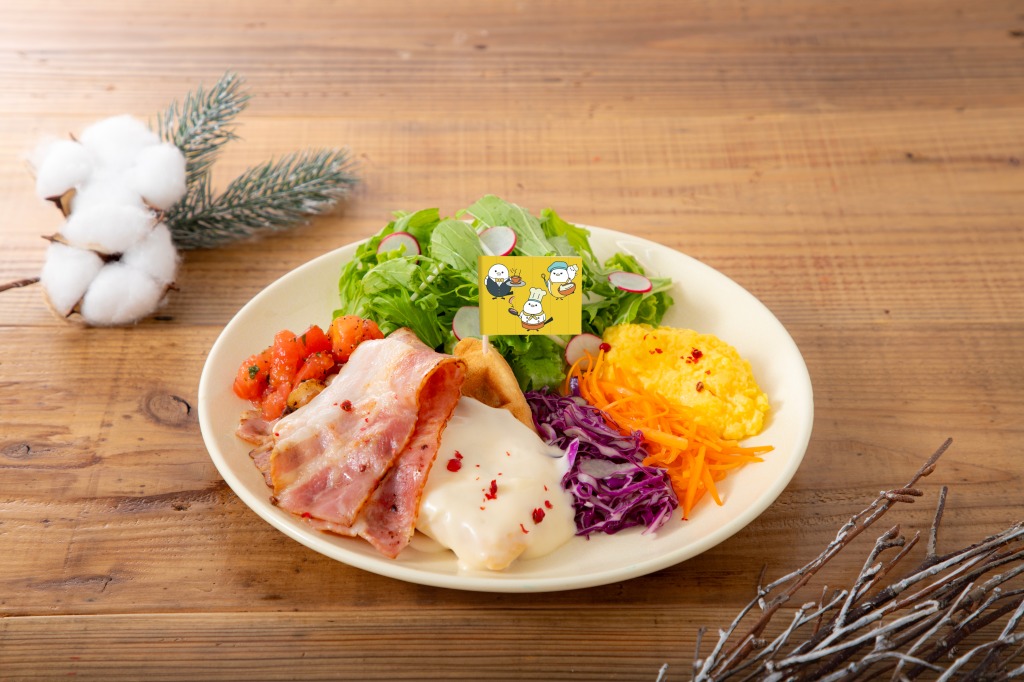 ほかにもプリンなどのほか、『THE TIME,』のレインボーカラーをイメージしたモーニングプレートやパフェ、「シマエナガちゃん」の故郷であり、安住アナの出身地でもある北海道をイメージしたおしるこなども提供されます。