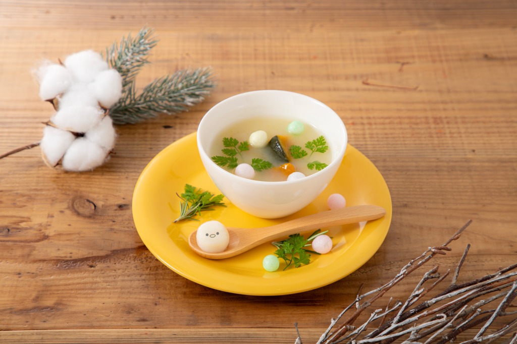 温泉をイメージしたスープに「シマエナガちゃん」たちを入れて味わうメニューです。
