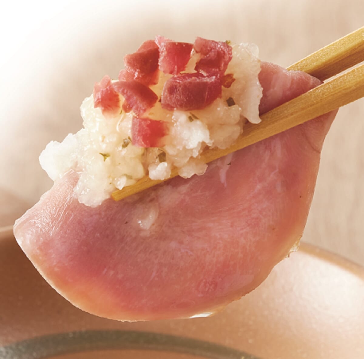 「梅おろし」は、粗目におろした鬼おろしに、カリカリ梅や大葉などを加えた薬味。
