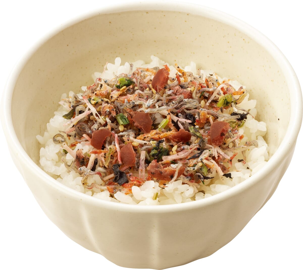 「梅ちりめんごはん」は、ちりめんじゃこの旨みとカリカリ梅の食感が楽しい一品。