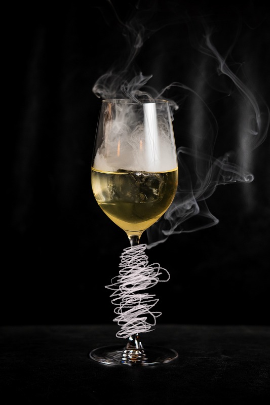 バニラの霧を纏わせて提供される、ワインのように飲むカクテルです。